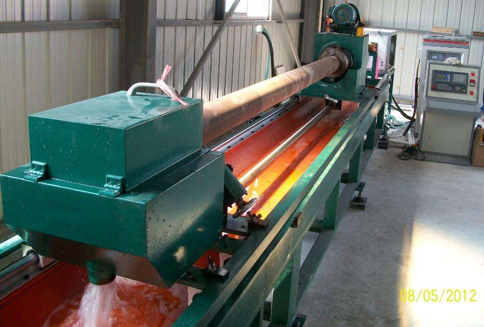 以前,金屬材料(如鋁合金 鐵 銅等)生產(chǎn)成型的工件產(chǎn)品采用硝酸鹽(KNO3)浴槽處理。隨著金屬材料(如鋁合金 鐵 銅等)生產(chǎn)成型的工件產(chǎn)品長度的增加,這類淬火方式已被淘汰,F(xiàn)階段國內(nèi)、外用得比較普遍的是中高頻淬火爐,此類設(shè)備具備可以自動化生產(chǎn),淬火冷卻池直接設(shè)在爐子下方。這類高頻淬火爐具備以下特點: