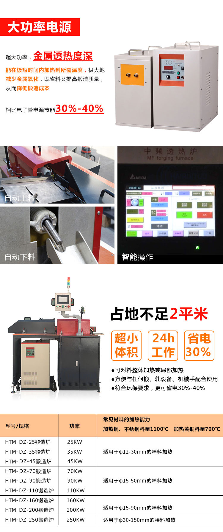 别名Q中频锻造加热炉 型号QHTM-DZ ?sh)压Q?80V 功率Q?5-250kw 用途:(x)新型节能中频感应加热透热锻造炉铜棒淬火退火透热U冲L讑֤,适用于铜、铁、铝材的透热Q圆料、方形料或其它Ş状毛坏料{的q箋透热Q可Ҏ(gu)整体加热或局部加?/br>